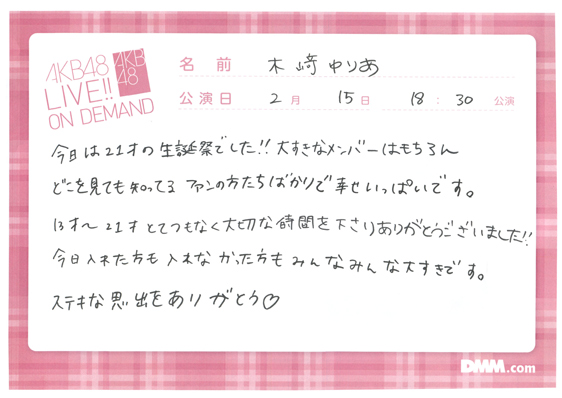 2017年2月15日(水) チームB 「ただいま 恋愛中」公演 木崎ゆりあ 生誕祭